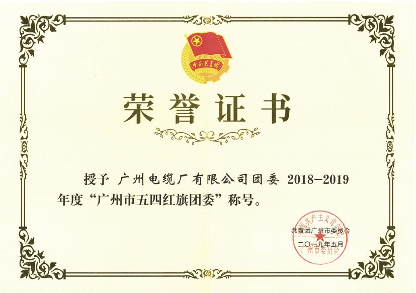 5月,广州电缆厂有限公司团委获共青团广州市委员会授予“广州市五四红旗团委”称号。