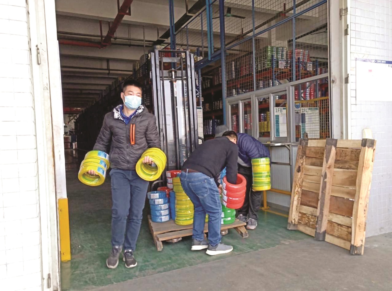 由于春节时间一线工人休假,经过连夜的讨论协调,在穗的党员领导干部发挥带头作用,带领业务部门、制造车间、仓库等10多名同事于1月29日清晨迅速回到工作岗位,全力以赴保障2万米的电线及时发车赶赴武汉。随后,于1月29日公司收到客户追加接近3万米的电线订单,合共5万米先后于1月29日、30日凌晨全部发车支援武汉雷神山医院项目建设。5万米电线在空间距离上,虽然还不足以将广州与武汉连接在一起,但却可以把广州电缆人的心与武汉人们的心连结在一起。
