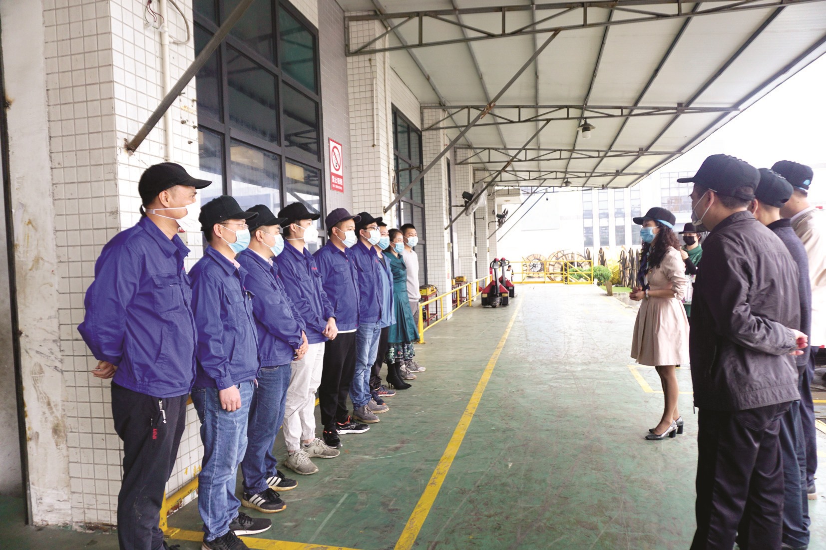 3月19日,广智集团工会主席林集、副主席李克及工会工作人员来到广缆,深切慰问了这群冒着疫情风险、主动加班驰援雷神山医院建设项目的同事。在现场,林主席了解了这次任务的经过,对广缆人的大无畏无私奉献的精神给予高度的评价,也希望大家能够坚定信心、共克时艰,全力以赴抗击疫情。
