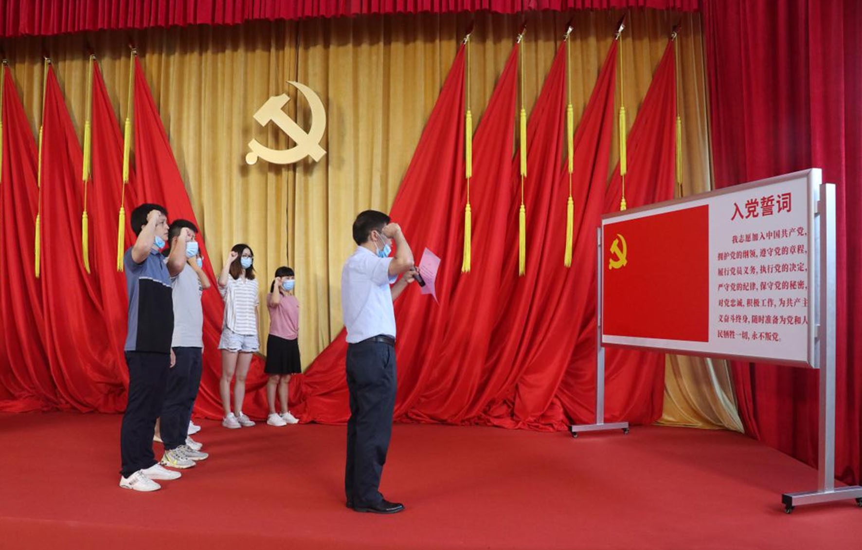 随后,党员大会在国歌声中拉开帷幕,在公司党委副书记严朝立的带领下,公司新入党的7名预备党员向党旗庄严宣誓,与会同志重温入党誓词。公司下属各党支部新一届委员也于会上进行就职宣誓,进一步压紧压实党建工作责任。