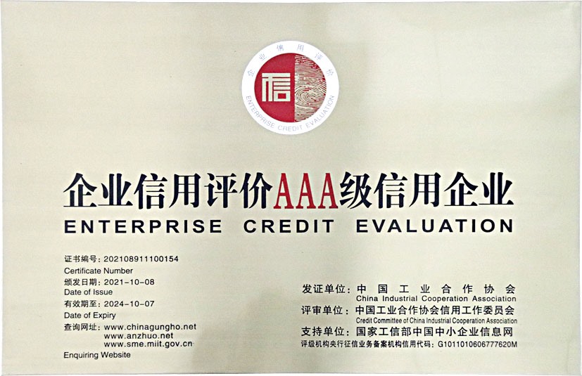 2021年10月,公司获“企业信用评价AAA级信用企业”称号,这是企业履约能力的反映,也是企业日常经营状况健康程度的体现。