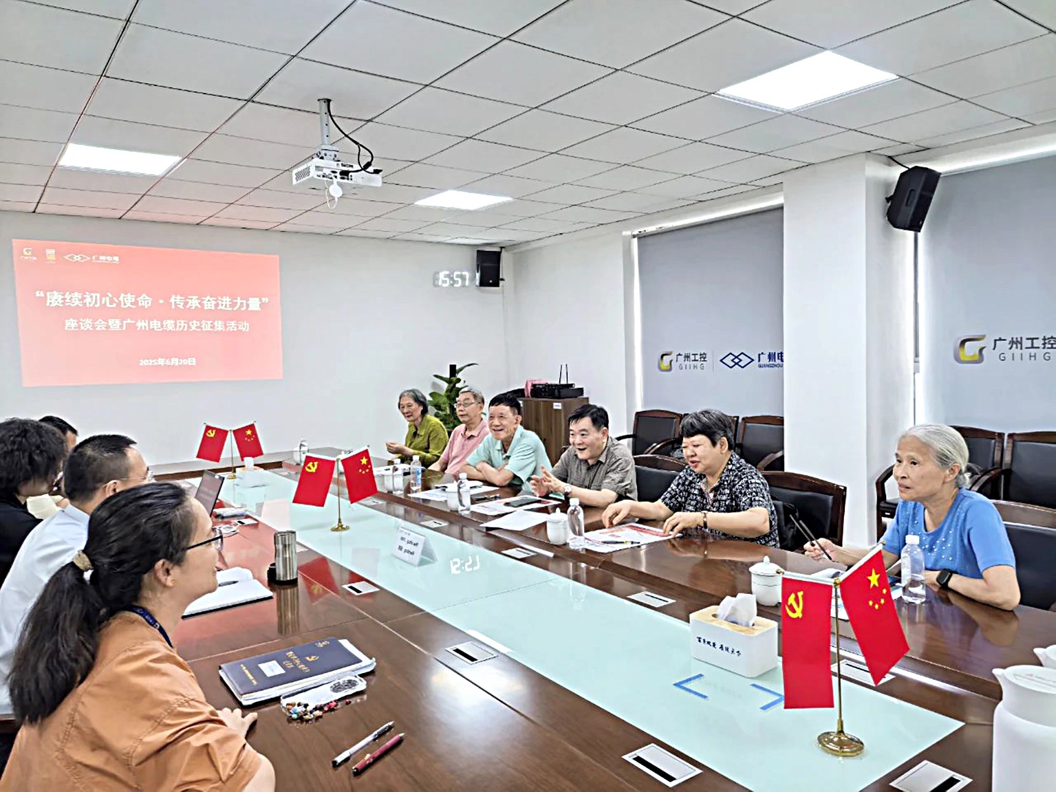 近日,广州电缆迎来一群久别的“家人”—— 原广州电缆厂党委书记陈元椒、高级工程师张泽鸿和史善苏等6位退休老党员回到公司,参加公司党委召开的 “赓续初心使命・传承奋进力量” 座谈会暨历史征集活动。公司党委书记、董事长余群光热情与各位老同志见面,党委副书记、纪委书记张小曼主持会议,与老同志们亲切交流。党建中心负责人、团委书记及中青年骨干代表共计18人参加。