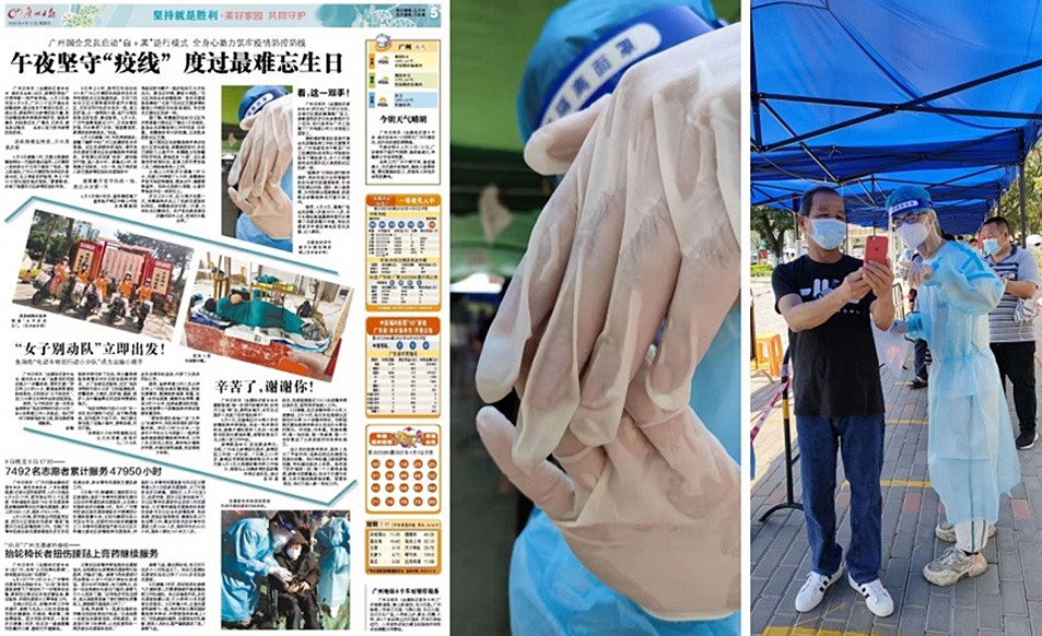 4月10日《广州日报》抗疫专栏上,出现了创新车间员工贺鼎城被汗水泡得发白的手。