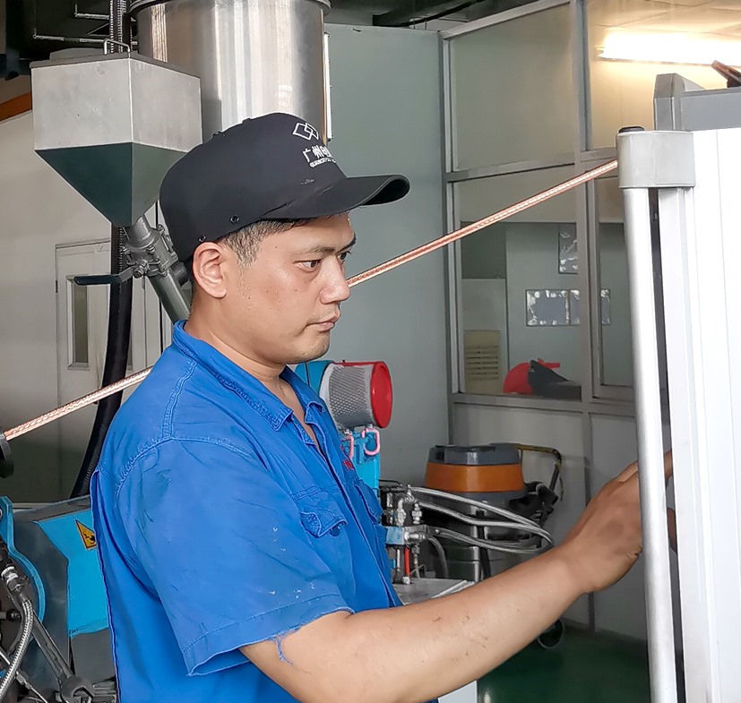 尤其在2014年初,公司从广州市白云区槎头厂区搬到广州市南沙区榄核厂区,并引进了行业先进的CCV悬链式交联生产线。“更大的厂区也意味着更大的舞台。”在公司的安排和引导下,何杰带领组员成为第一批入驻新厂的员工,主要工作是对CCV设备进行调试。“由于是进口设备,德国厂家派来的德国工程师,虽然有翻译人员,但是语言上的沟通还是对我们班组造成了不小的困扰。”何杰坦言道。