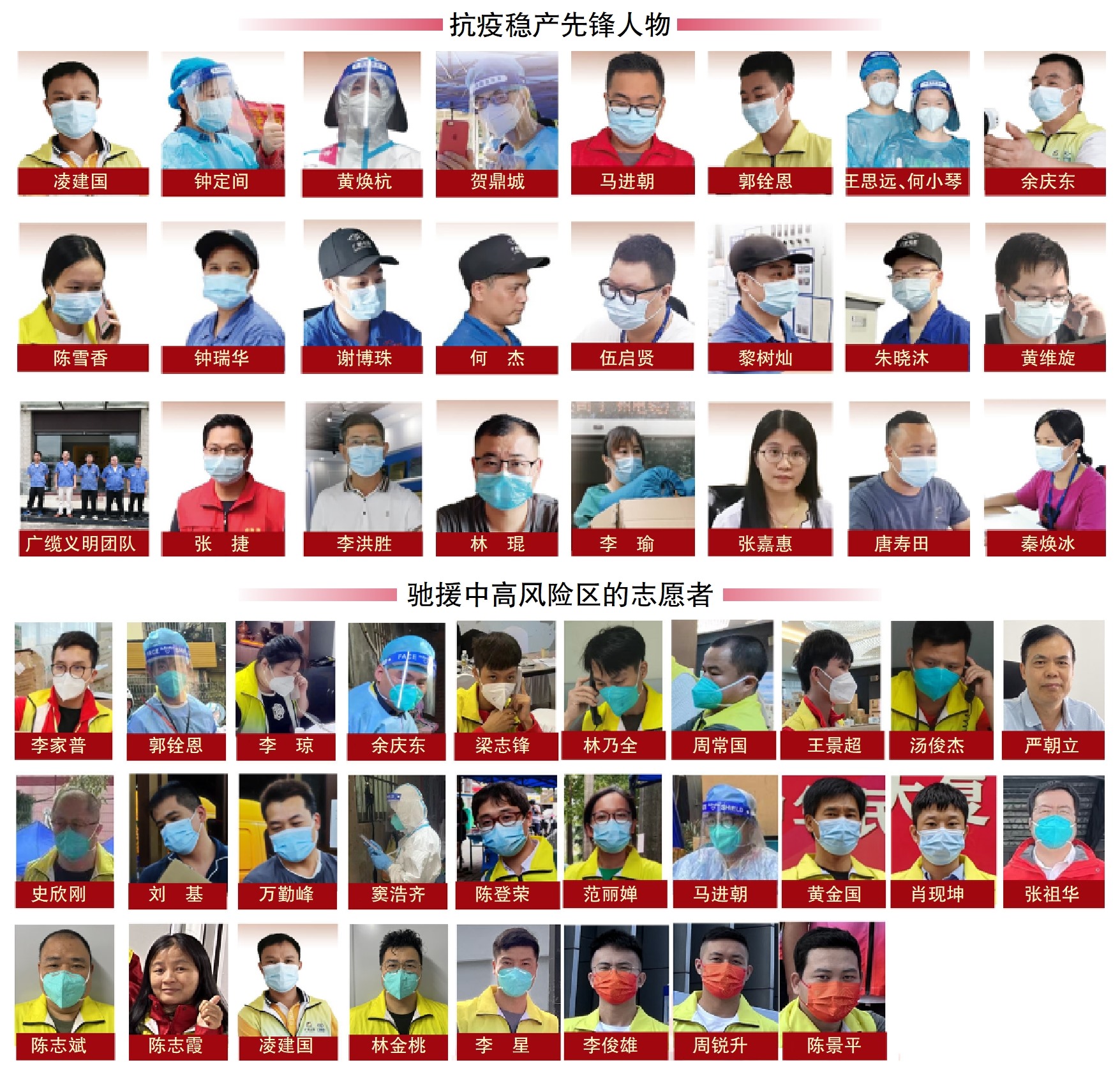 表彰2022年4月24名抗疫稳产先锋人物,及10月以来驰援中高风险区的28名广缆志愿者。