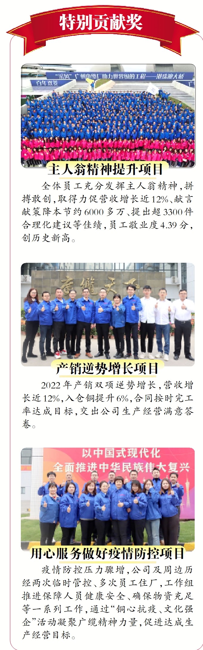 2022年,在广州工控的正确引领下,全体广缆人抗疫情、保后勤、稳生产,取得营收同比增长11.71%,年度目标完成108.63%的亮眼成绩,感谢每一位了不起的奋斗者!