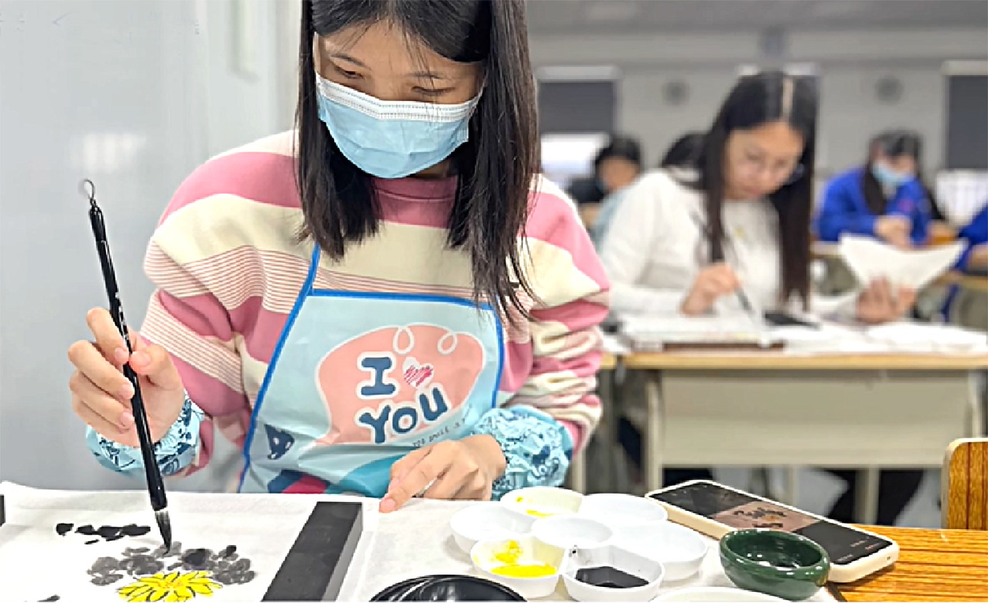 ▲弘扬传统文化 传承国画精粹,国画培训课上,大家学习绘画技巧,感受国画意境与韵味