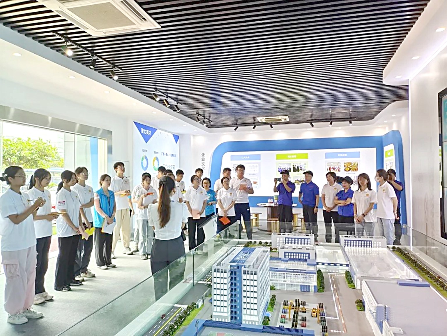 在“悦缆”展厅,我司讲解员向前来参观的青少年详细介绍企业的发展历程、工程案例、企业荣誉、研发实力和成果等,青少年们感慨:“大开眼界,学习到企业在国家、社会中的担当。”