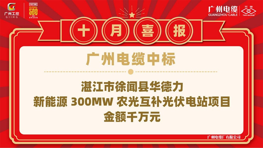 近日,广州电缆中标订单千万元的湛江市徐闻县华德力新能源300MW农光互补光伏电站项目。