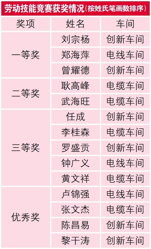 近日,2023年广州电缆“广缆杯”电线电缆制造工(挤塑工)劳动技能竞赛结果出炉,来自创新车间、电线车间、电缆车间的14名选手从110名参赛者中脱颖而出,摘得竞赛荣誉。这是广州电缆大力推进产业工人队伍建设,以赛促干提升员工技能水平,推进企业高质量发展的重要举措。