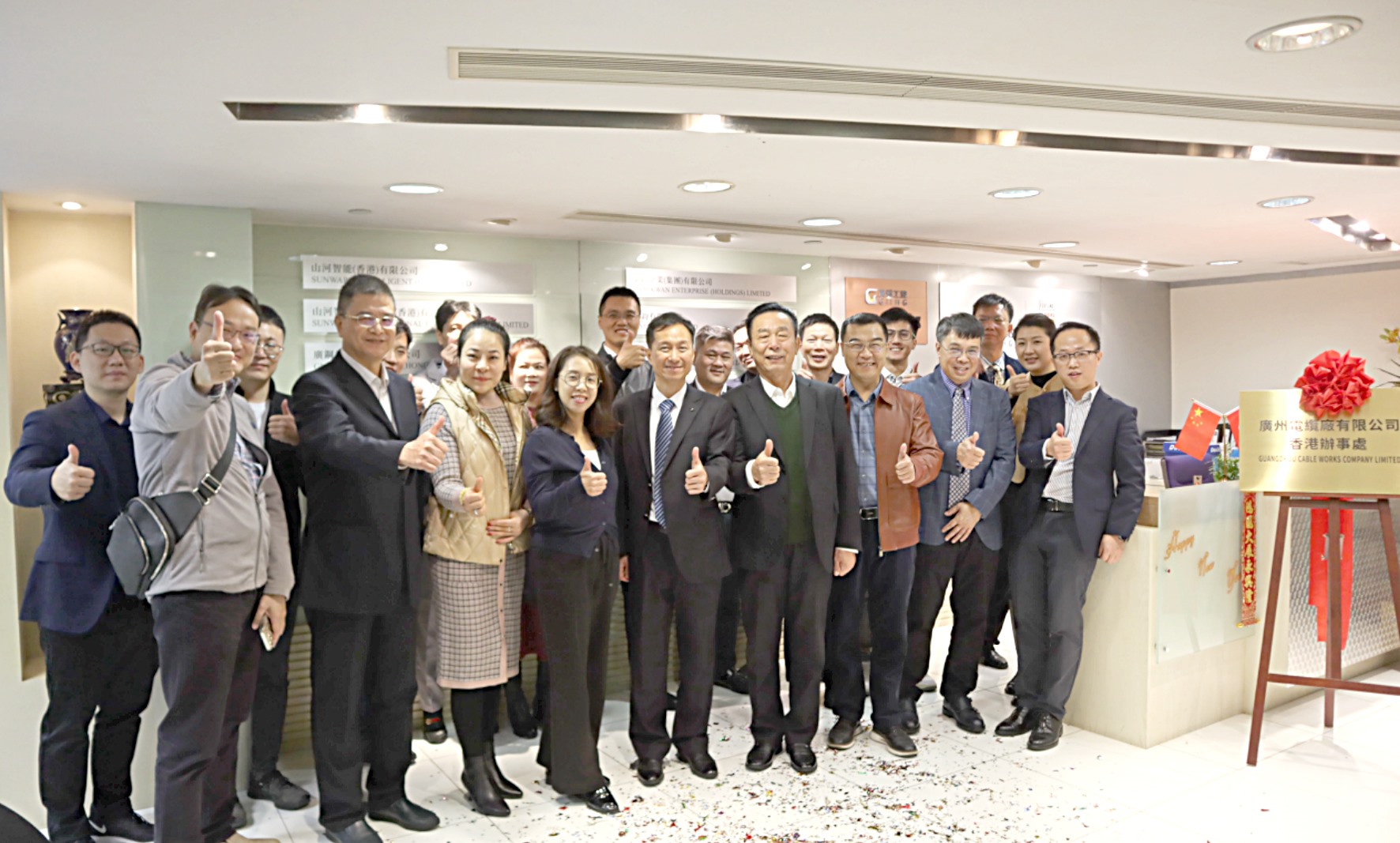 2023年12月29日,广州电缆香港办事处在广州工控海外事业部办公室——香港中环永安集团大厦举行挂牌仪式,邀请广州工控海外事业部副部长、金钧集团董事长刘茵,金钧集团总经理林凯鹏,中铁电气化局集团澳门分公司总经理孙文超等领导及客户出席活动。