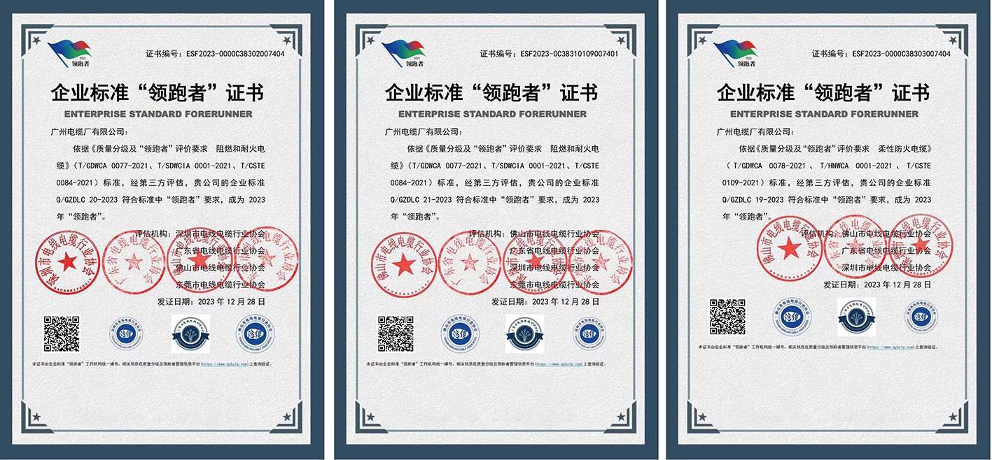 近日,由国家市场监督管理总局、国家发改委等八部门联合指导,中国标准化研究院组织的2023年全国企业标准“领跑者”榜单公布,广州电缆3项企业标准成功上榜。