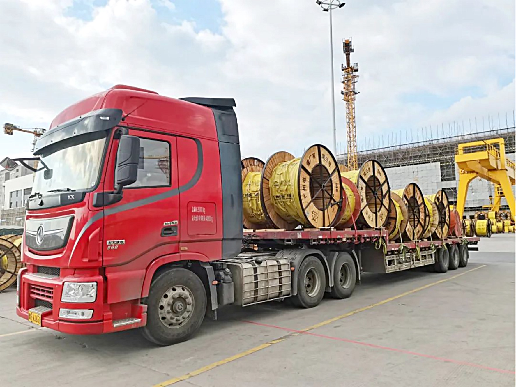 ▲开工首日,第一批线缆运往项目建设现场