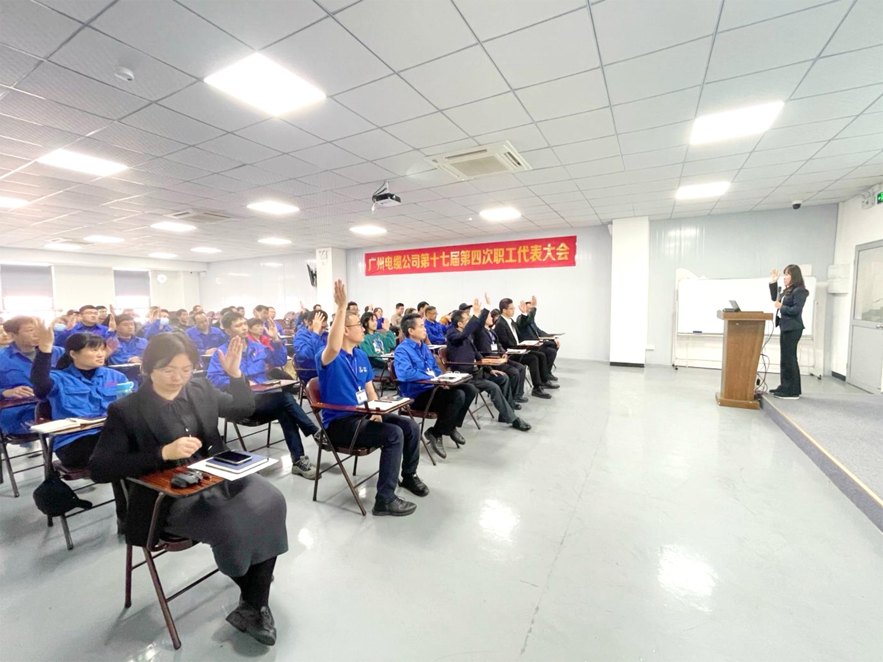 3月5日,广州电缆召开第十七届第四次会员(职工)代表大会,回顾2023年工会工作情况,安排部署2024年度工会工作,公司领导班子及职工代表参会。