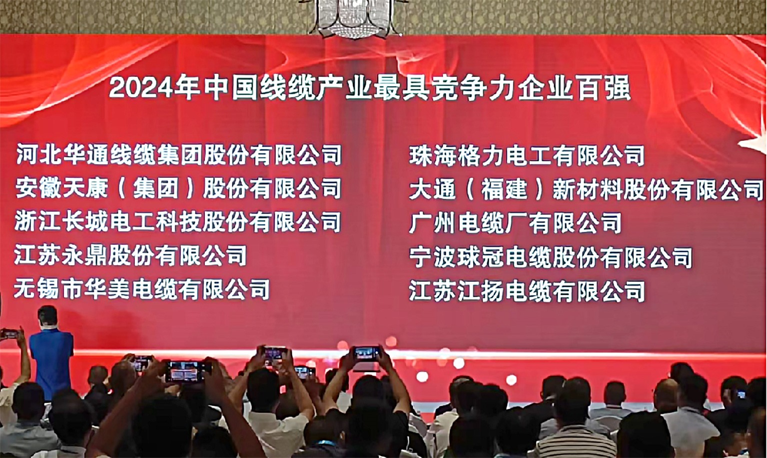 荣登中国线缆产业最具竞争力企业第28位