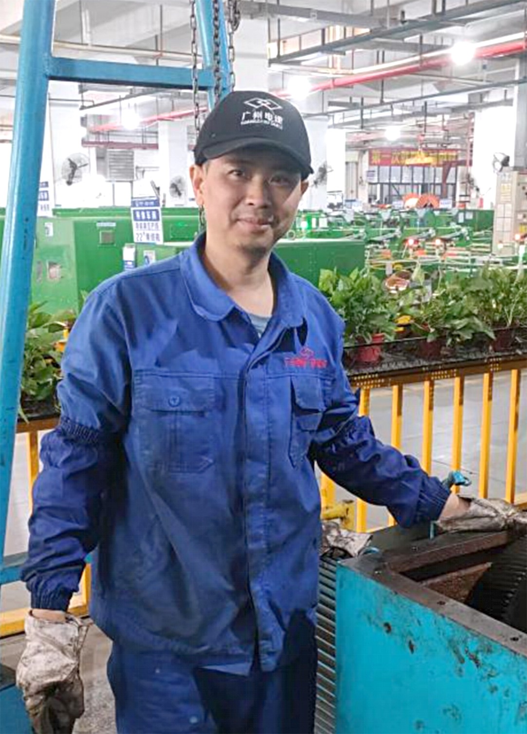 在导体车间,笼绞机、大拉机等生产设备昼夜不停地运转,以确保及时为客户供应优质产品。设备高效运转的背后,离不开一支默默奉献的保障团队。黎其标作为车间设备的保障主力,带领团队完成了20台重点设备的年度保养,及时发现并消除了多个隐患点。并成功优化大拉机的热交换器,使其效率大幅提升,产能提速21%。第四季度末,笼绞机的地轴联轴器突发故障,工期紧迫,黎其标冷静应对,带领团队24小时内修复,确保了生产线的快速恢复,避免了停产损失。
