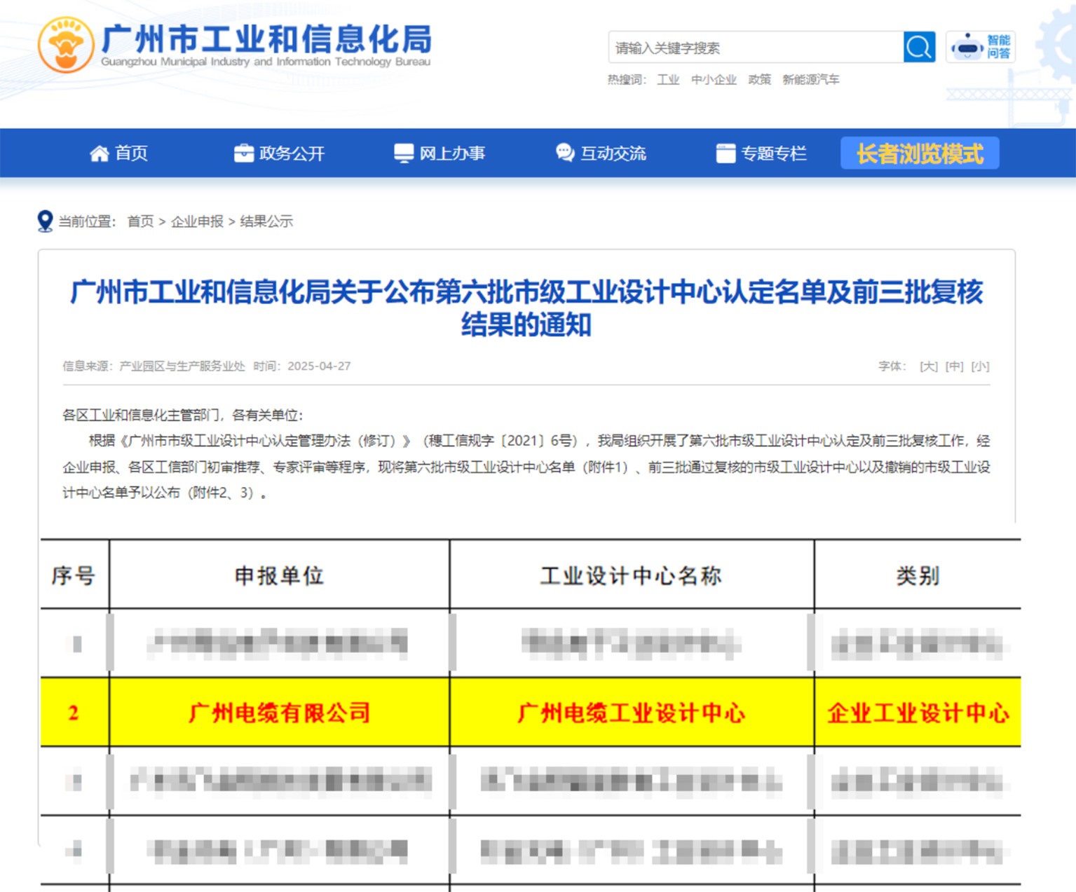 4月27日,广州市工业和信息化局公布第六批市级工业中心认定名单,我司凭借突出的技术创新能力和显著的市场示范效应,荣获“广州市市级工业设计中心”称号。