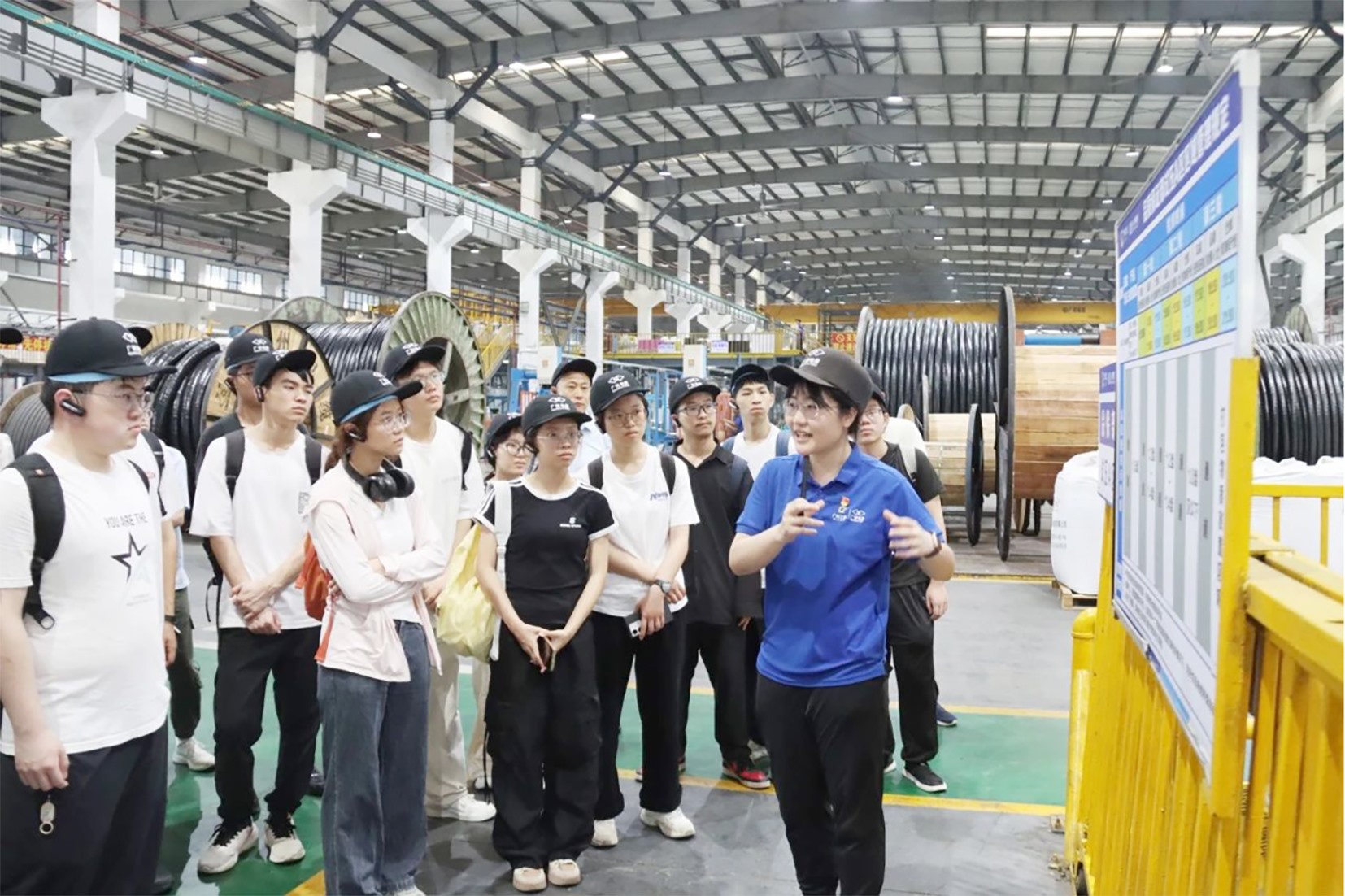 广东工业大学机电工程学院工业工程系35位师生参观了广州电缆悦缆展厅,深入车间参观了解电线电缆工艺、生产过程,同学们对传统制造业企业的精益生产实践产生了浓厚的兴趣。在座谈环节,广州电缆30多位运营部门骨干一同参与。双方党支部共同开展“第一议题”学习,学习习近平总书记在河南考察时的重要讲话精神,重新认识制造业在国民经济中的重要支柱作用,立志以科技和精益管理赋能制造业。